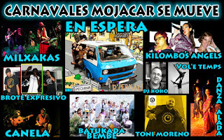 No os podeis perder el pedazo de Carnaval que tenemos preparado para este año, con Danza Oriental, Batucada, Circo, Conciertazos, actividades Infantiles y un monton de cosas más! Nos vemos este Sábado en Mojacar!! :)